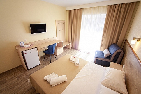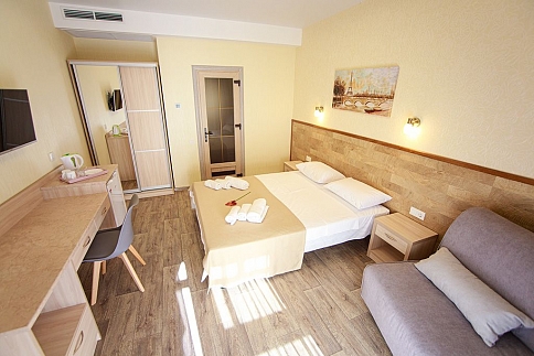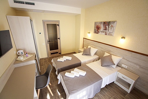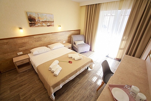 Номера однокомнатные, 20-35 кв. метров:Все номера с современным ремонтом и оборудованы для максимально приятного отдыха:- 2х местный с раздельными кроватями;