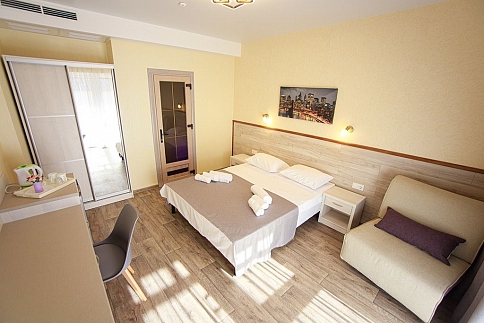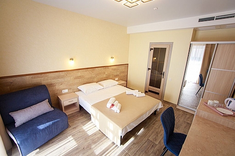 - 2х местный с двуспальной кроватью и дополнительным спальным местом.
