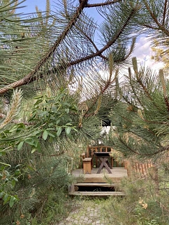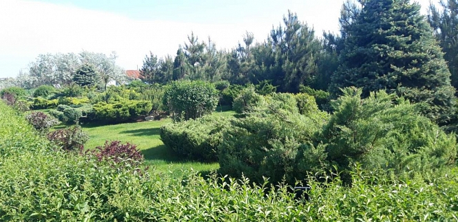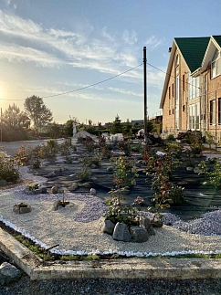Гостевой дом включает в себя шесть комфортабельных номеров с отдельно стоящей кухней. К услугам наших гостей большая территория с европейским газоном, соснами, розарием, клумбами, садом камней и каналом, впадающим в открытое море.