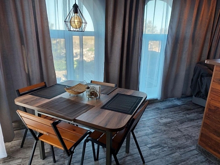 Мы позаботились о вашем комфортном пребывании на Бердянской косе в холодное время года. Вас ждет теплый уютный двухкомнатный номер с камином и со всеми удобствами! Спальня и студия с кухней, TV, санузел с душем.