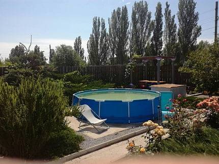 Номера со всеми удобствами: новая мебель, телевизор, кондиционер, душ, туалет. Возможность готовить самим - кухня, где есть газовая печь и вся необходимая посуда для приготовления пищи. Большой двор с бассейном, шашлычницей-мангалом, стоянкой для Вашего авто.