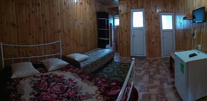 Также Вашему вниманию предлагаются номера на 1-5 человек. В номерах - телевизор, холодильник, кондиционер, современная мебель, кровати с удобными евроматрасами, цифровое телевидение Т2. Душ и туалет на два номера Полулюкс.
